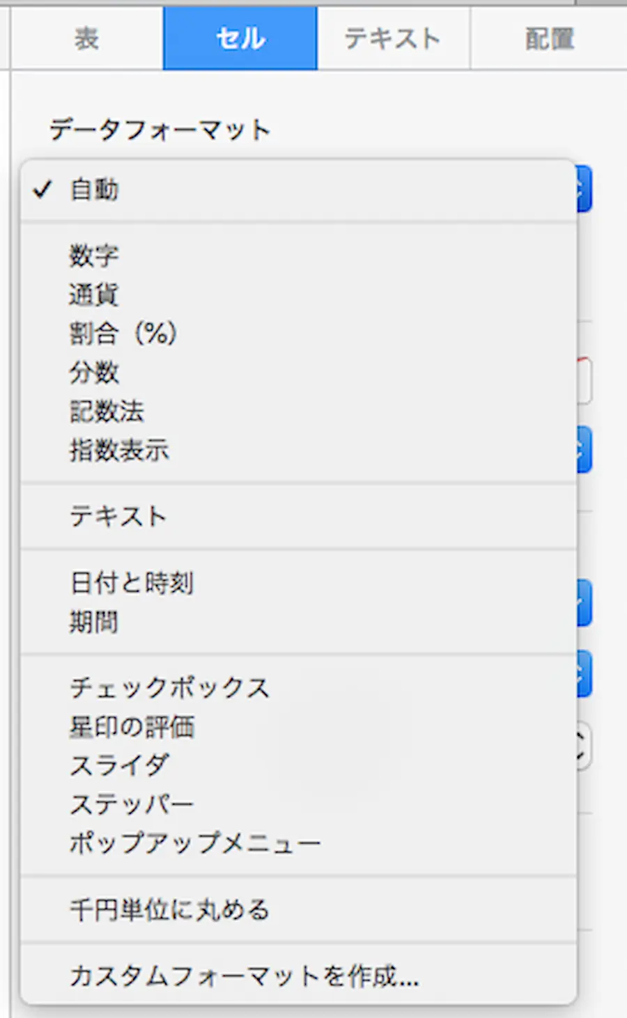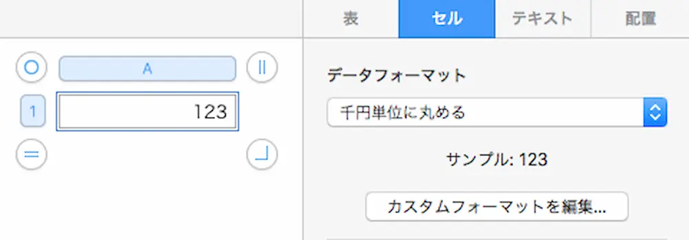 「データフォーマット」にもカスタムフォーマットで作成した「千円単位に丸める」が表示されているので、次回から繰り返し使用できるようになりました。