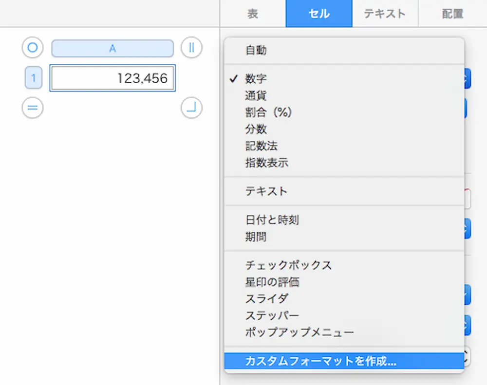 データフォーマットを開いて、「カスタムフォーマットを作成…」をクリックします。